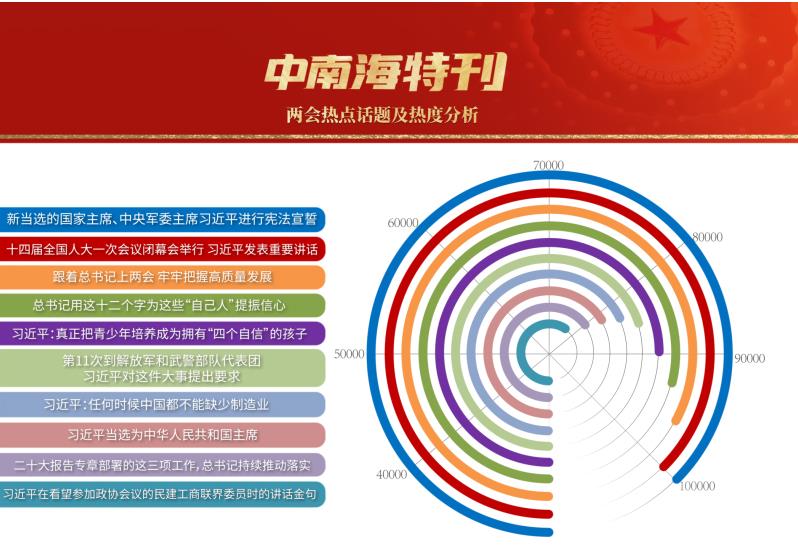 3月,世界目光,聚焦北京。近3000名中外记者采访报道全国两会。央视网“智闻”系统提取分析两会期间全网时政新闻热点显示,习近平总书记的两会关切吸引全网目光,新征程领路人的人民情怀成为网友“两会印象”最深刻的主题之一。
